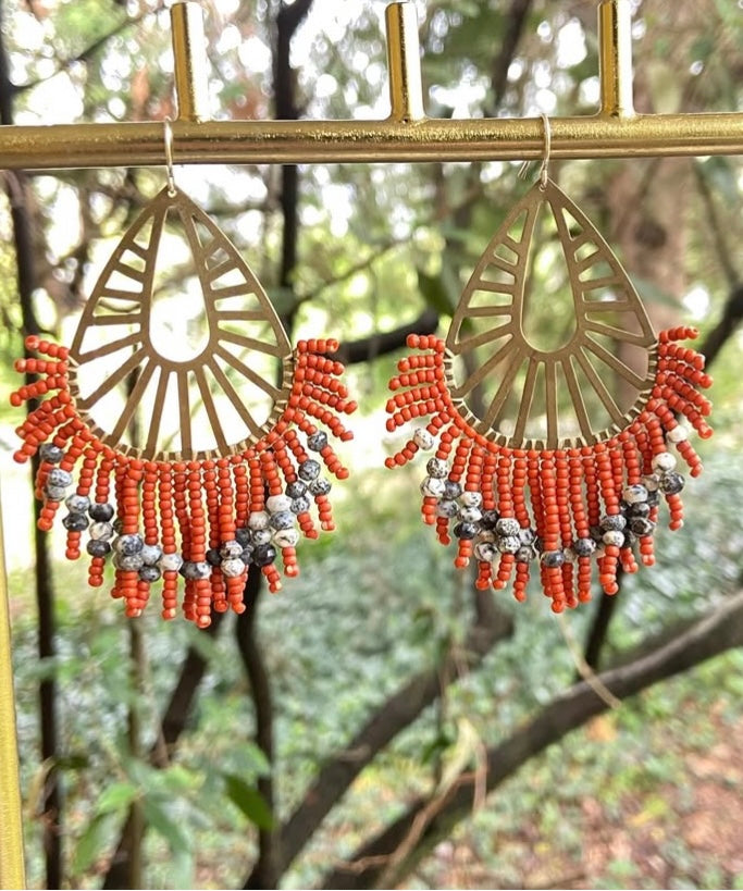 Coral Dalmatian Earrings ~